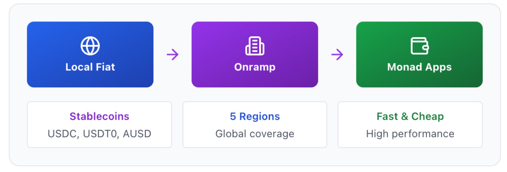 By supporting a broad, global onramp ecosystem, Monad enables developers to build apps that feel local everywhere while settling on a single, high‑performance chain.